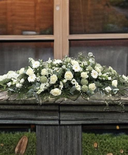 We will include White Roses, Green Astranthia, white Lisianthus, Antirinums, Spray Roses, Gerbera Mini, Alliums, Stocks, Campanula and freesias.