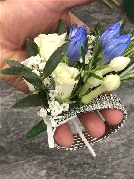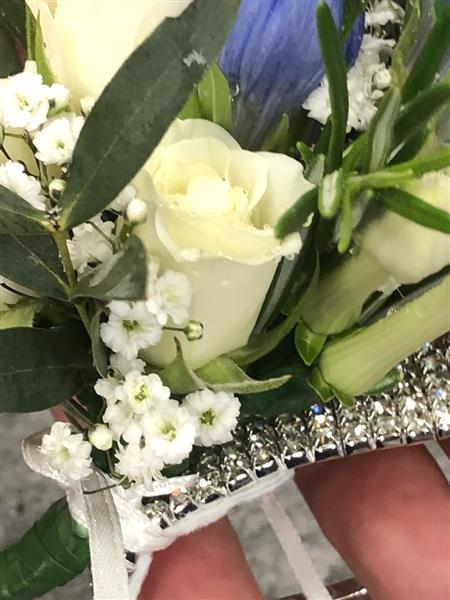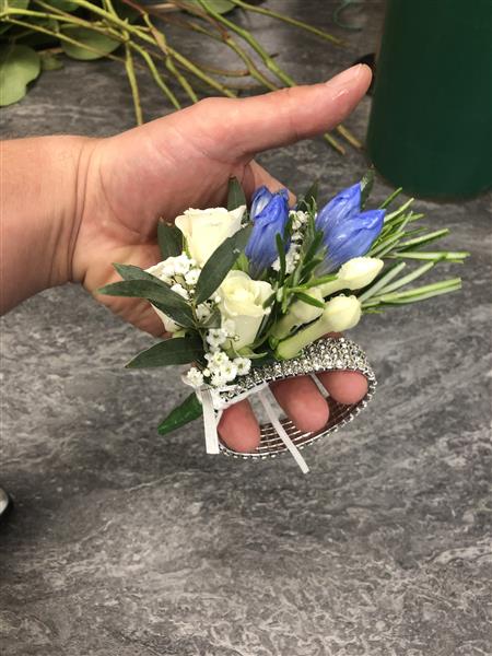 A wrist corsage on Robbon, Pearl or a dismounted bracelet.